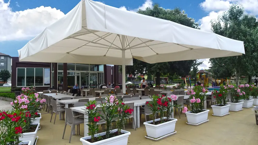 Installazione di ombrelloni per proteggere dal sole e migliorare il comfort degli spazi esterni.