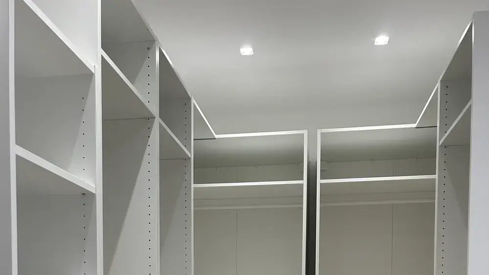 Installazione di soluzioni di illuminazione per guardaroba, migliorando visibilità e accessibilità.