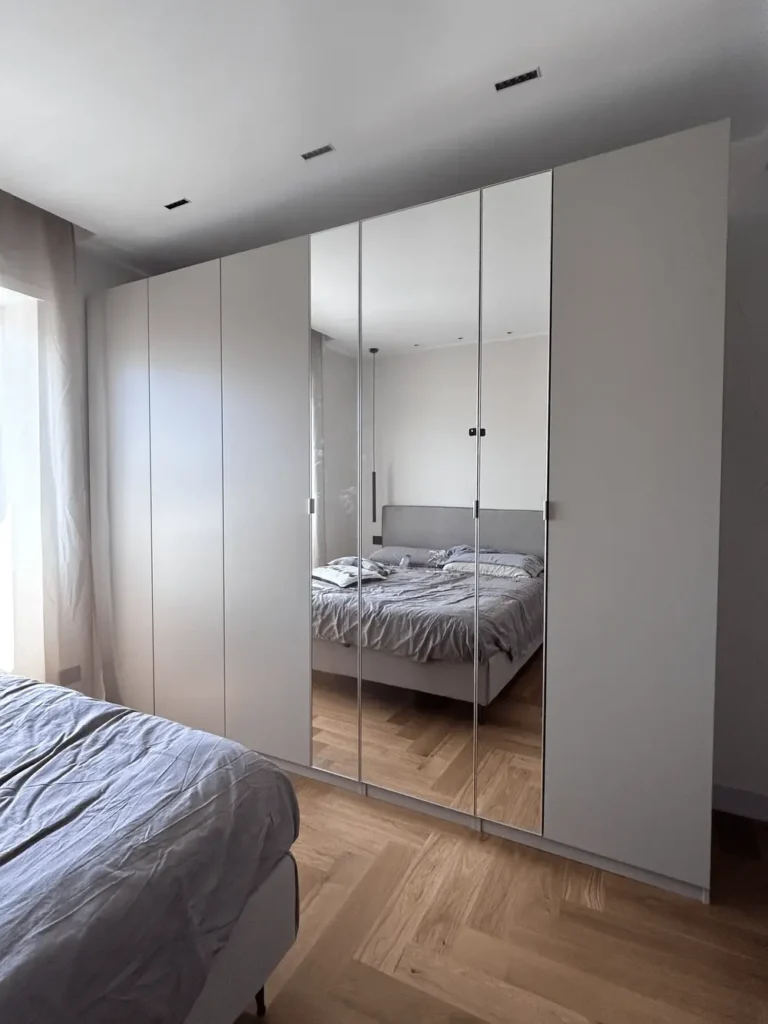 Installazione di armadi con ante battenti, ottimizzando lo spazio e l’accessibilità.